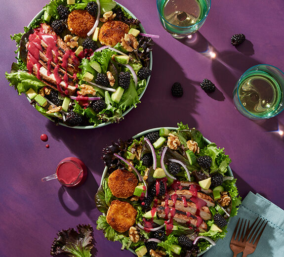 BLACKBERRY GOAT CHEESE SALAD WITH BALSAMIC CHICKEN