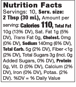 INGREDIENTS: ORGANIC HIGH-OLEIC SUNFLOWER OIL, FILTERED WATER, ORGANIC APPLE CIDER VINEGAR, ORGANIC DATES, CONTAINS 2% OR LESS OF: ORGANIC POPPY SEEDS, ORGANIC ONION, ORGANIC GROUND MUSTARD SEED, SEA SALT.